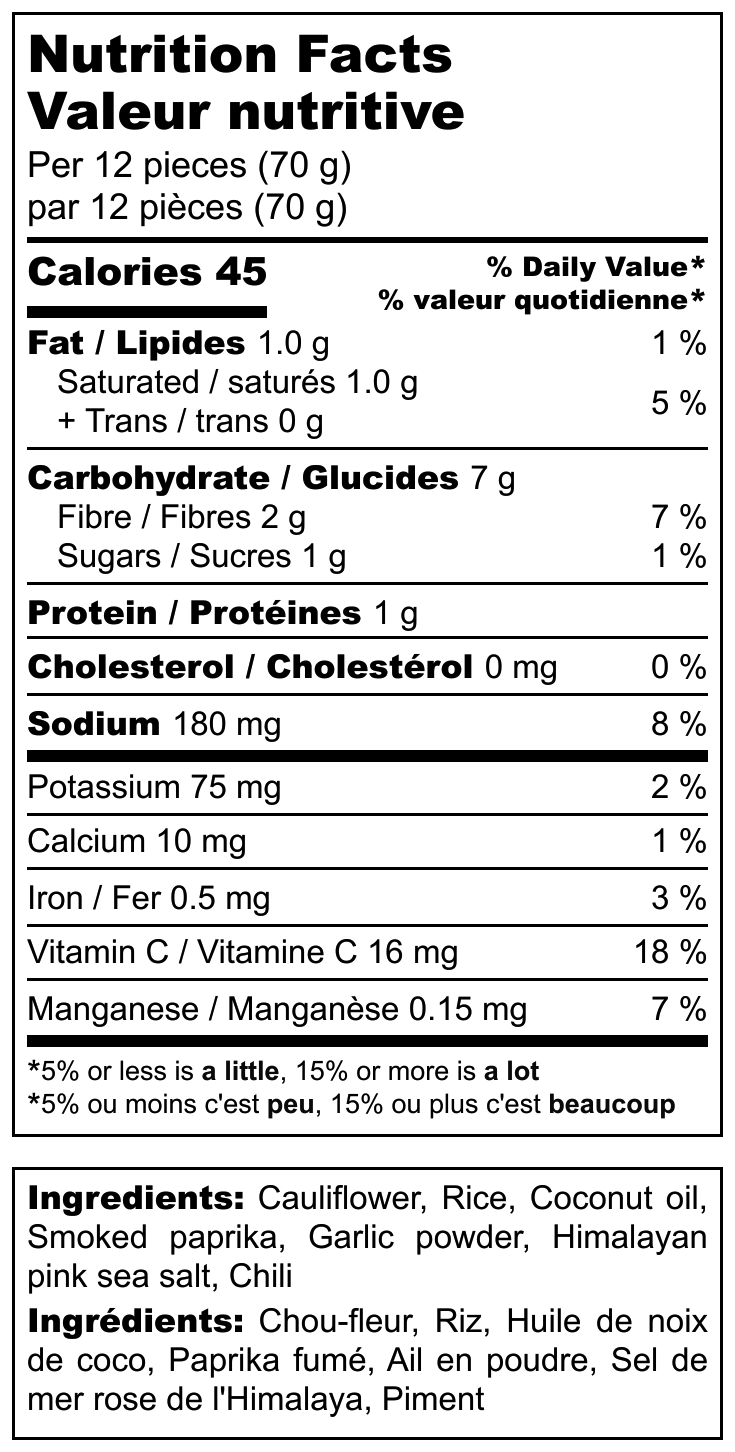 These finger-friendly fries are a sneaky way to add more vegetables to your little one’s plate, and they won’t even notice. They are perfect for picky eaters and make an excellent after-school snack. Crafted with care, these fries are made from real cauliflower blended with a touch of rice, cayenne pepper, smoked paprika and spices.