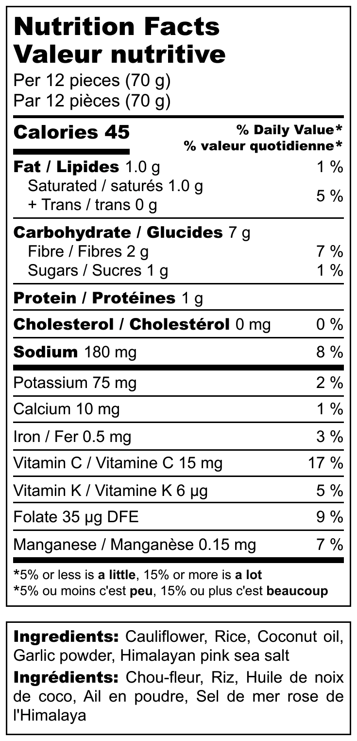 are made from real cauliflower and never fried, giving you all the crisp with none of the